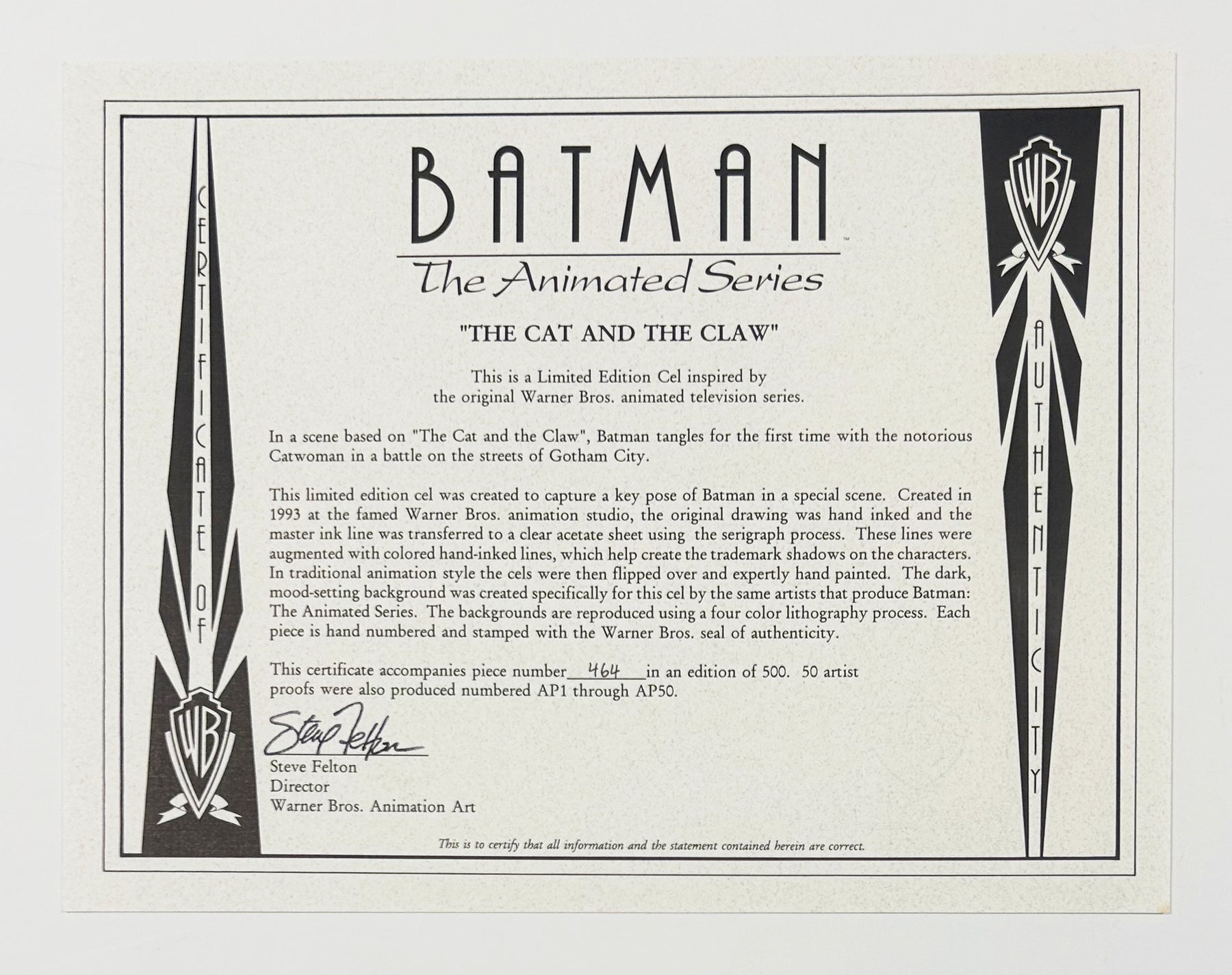 Warner Brothers, Batman: The Animated Series, The Cat and the Claw, (1993), Batman, Catwoman, Limited Edition Cel, Edition 464/500, 20 1/2" x 23 1/2" Framed Size, 13" x 16" Unframed Size,