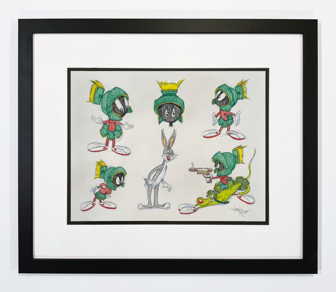 Warner Brothers, Marvin the Martian, Bugs Bunny, K-9, Signed by Virgil Ross, Model Sheet/Animation Drawing, Edition One of a kind, 21" x 24 3/4" Framed Size, 13 1/2" x 17" Unframed Size,