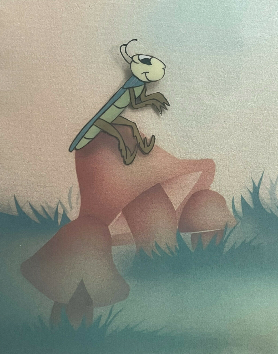 Disney, The Ugly Duckling, (1939), Ugly Ducking, Grasshopper, Production Cel on Courvoisier Background, Edition One of a kind, 16" x 17 Framed Size, 7 1/2" x 7 1/2 Unframed Size,