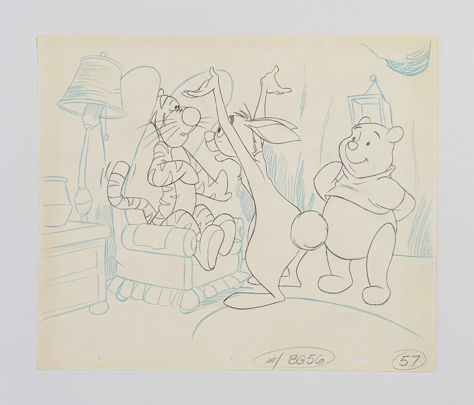 Walt Disney Television, The New Adventures of Winnie the Pooh (TV Series), (1988-1991), Winnie the Pooh, Rabbit, Tigger, Production Drawing, Edition One of a kind, 17 3/4" x 20 1/4" Framed Size, 10 1/2" x 12 1/2" Unframed Size,