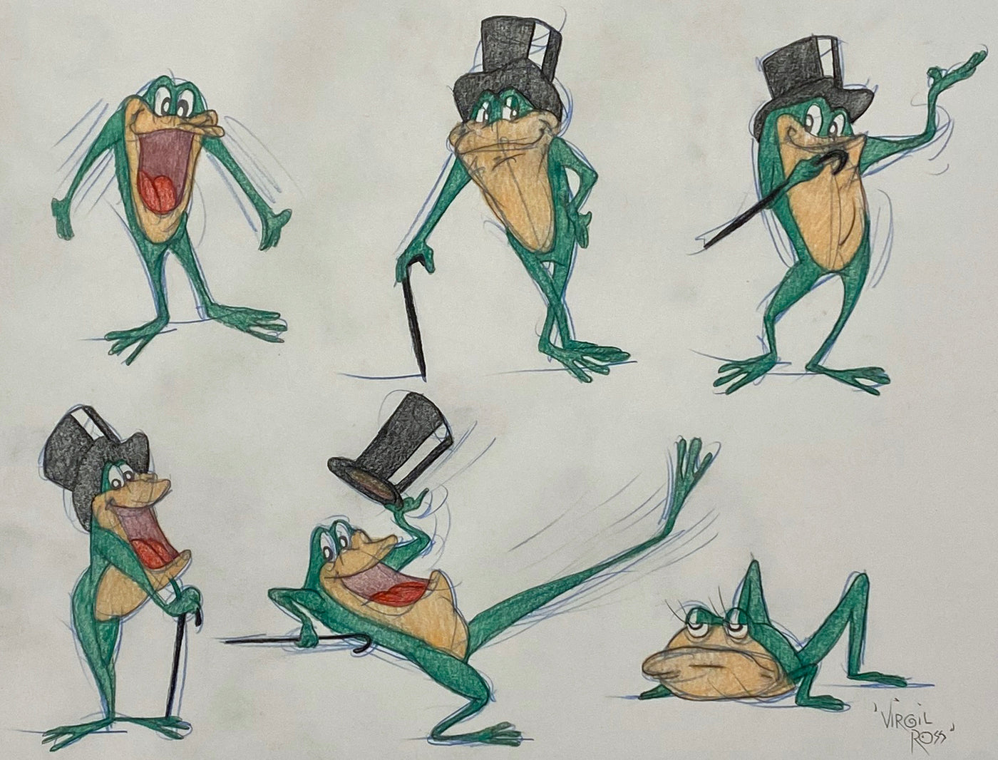 Original Warner Brothers Virgil Ross Model Sheet Animation Drawing featuring Michigan J. Frog