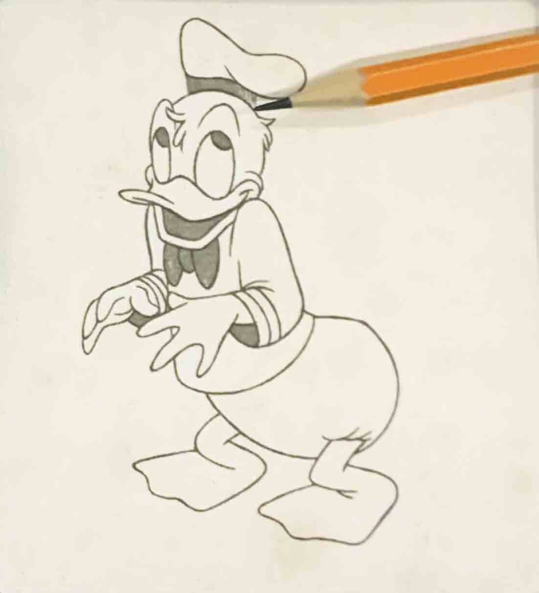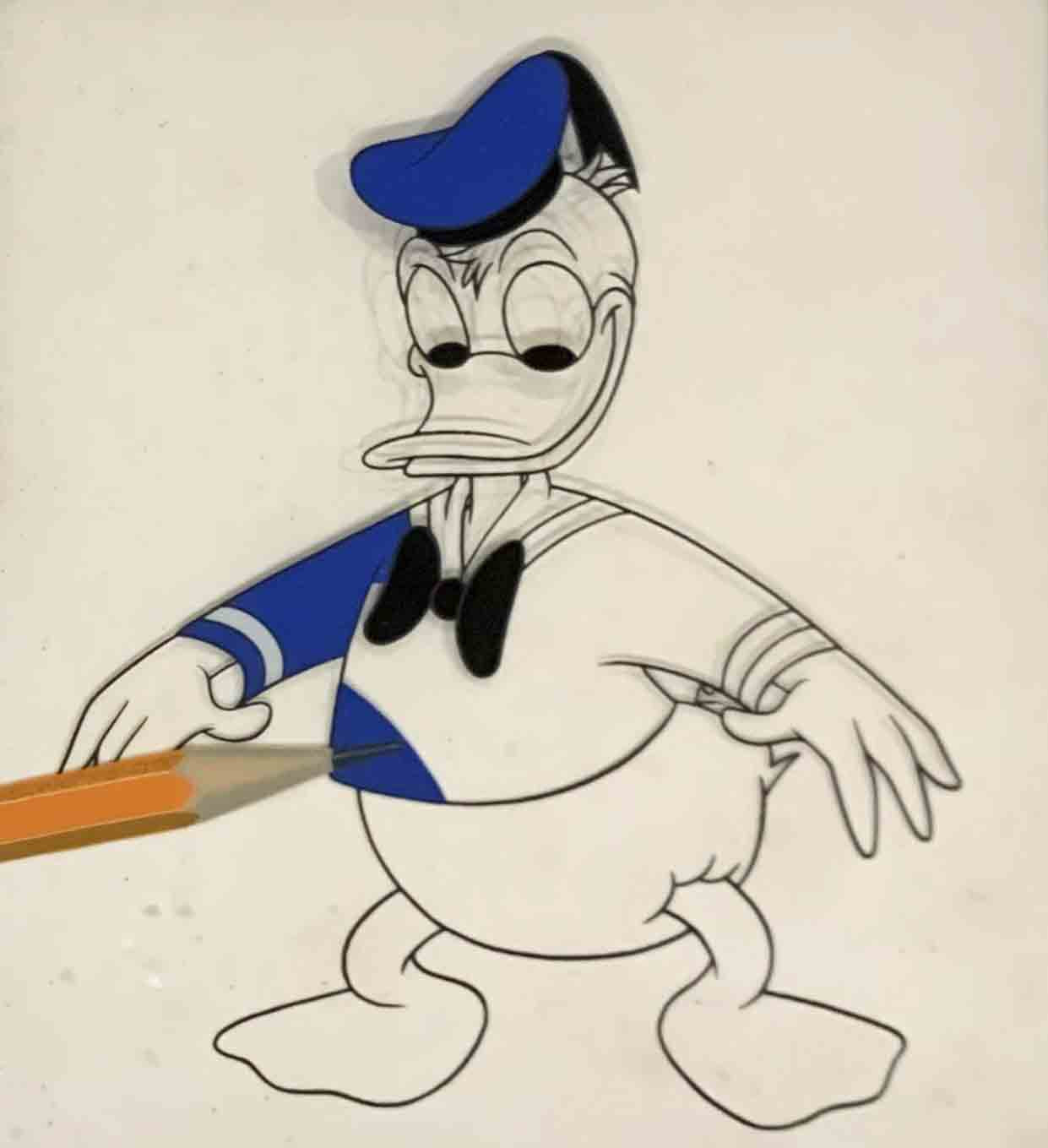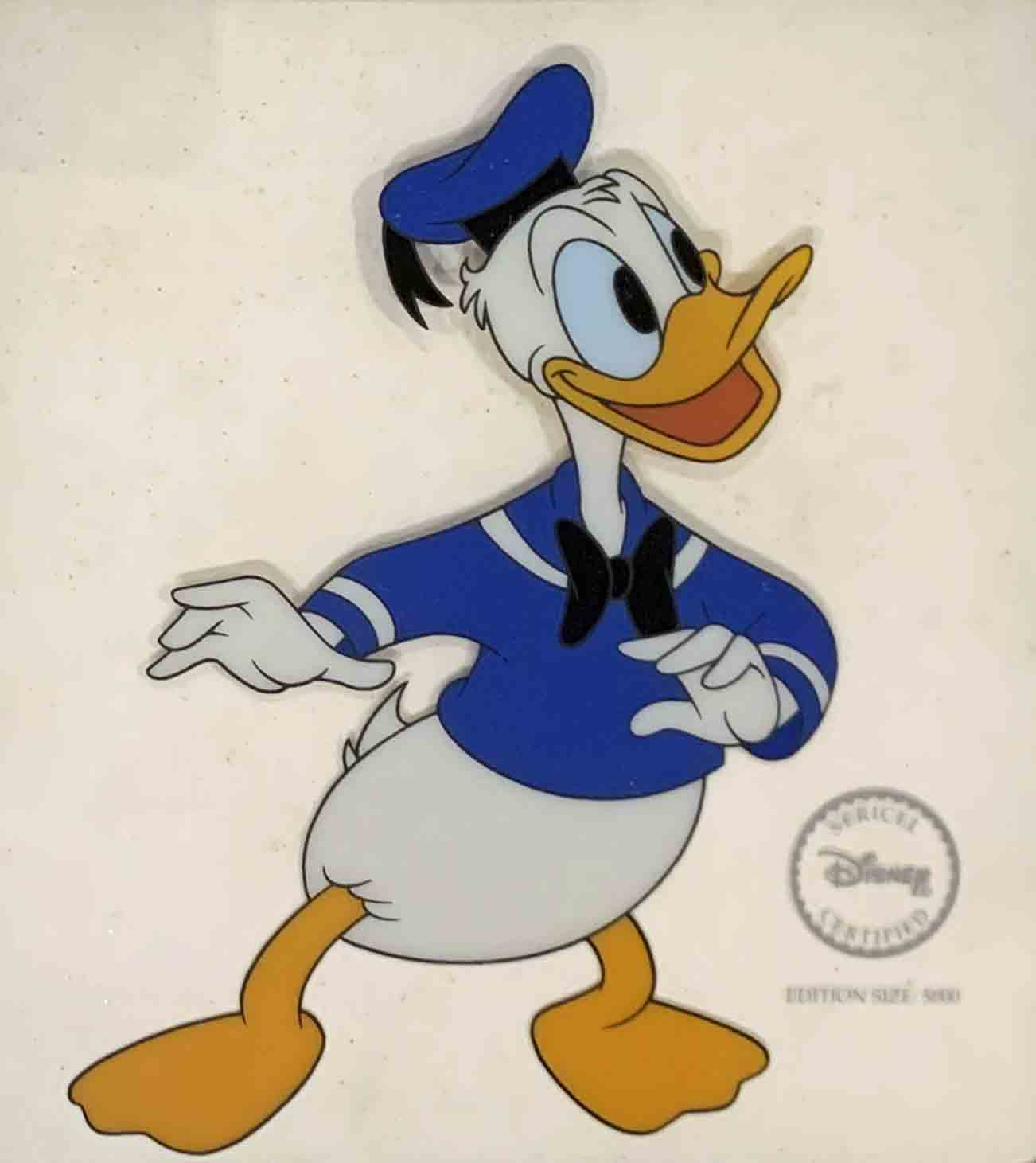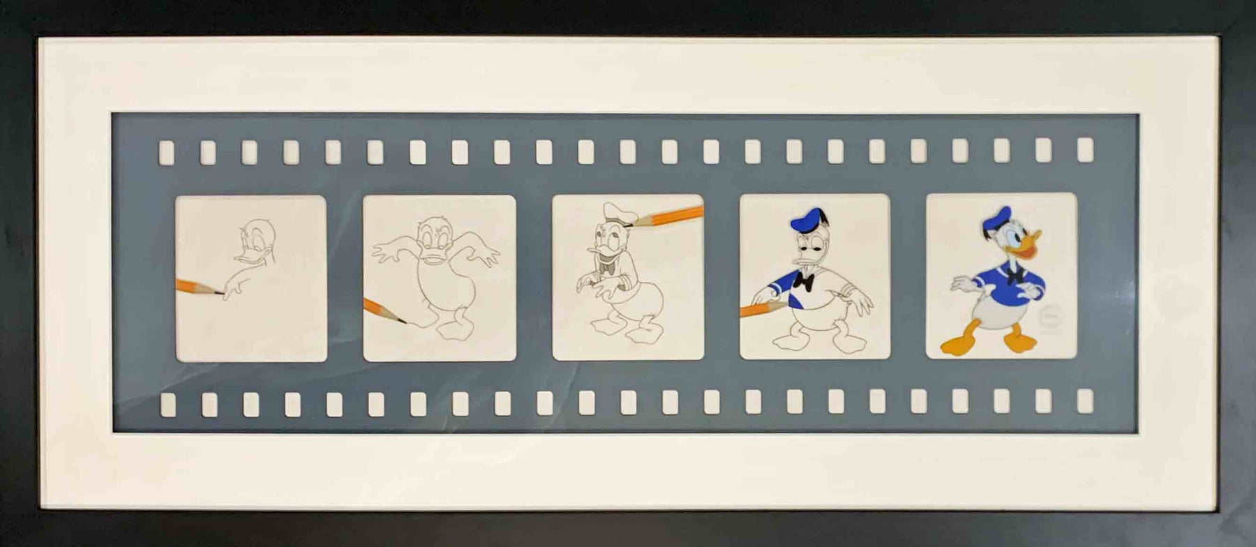 Disney, The Plausible Impossible, Drawing Donald, (1956), Donald Duck, Signed by No, but autographs of Donald Duck and Tony Anselmo (voice actor of Donald Duck) are included with Disney certification, Sericel, Edition 5000, 36 1/4" x 16 Framed Size, 29 1/2" x 9 1/2 Unframed Size,